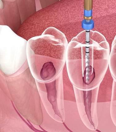 A root canal is a dental procedure used to treat infection or damage within the pulp (the soft tissue inside the tooth that contains nerves and blood vessels) of a tooth. When the pulp becomes infected due to deep decay, trauma, or repeated dental procedures, a root canal can save the tooth and prevent the need for extraction.